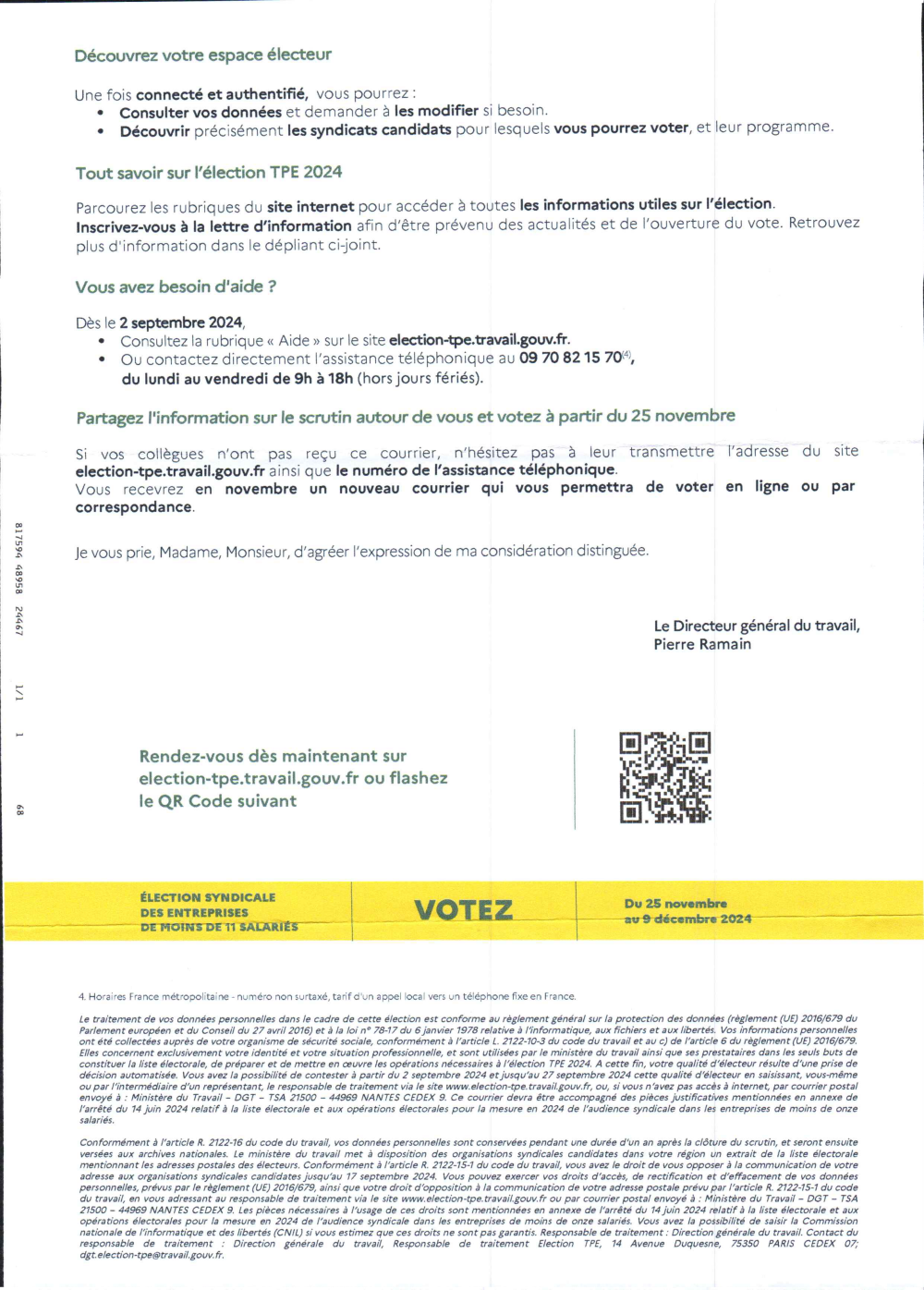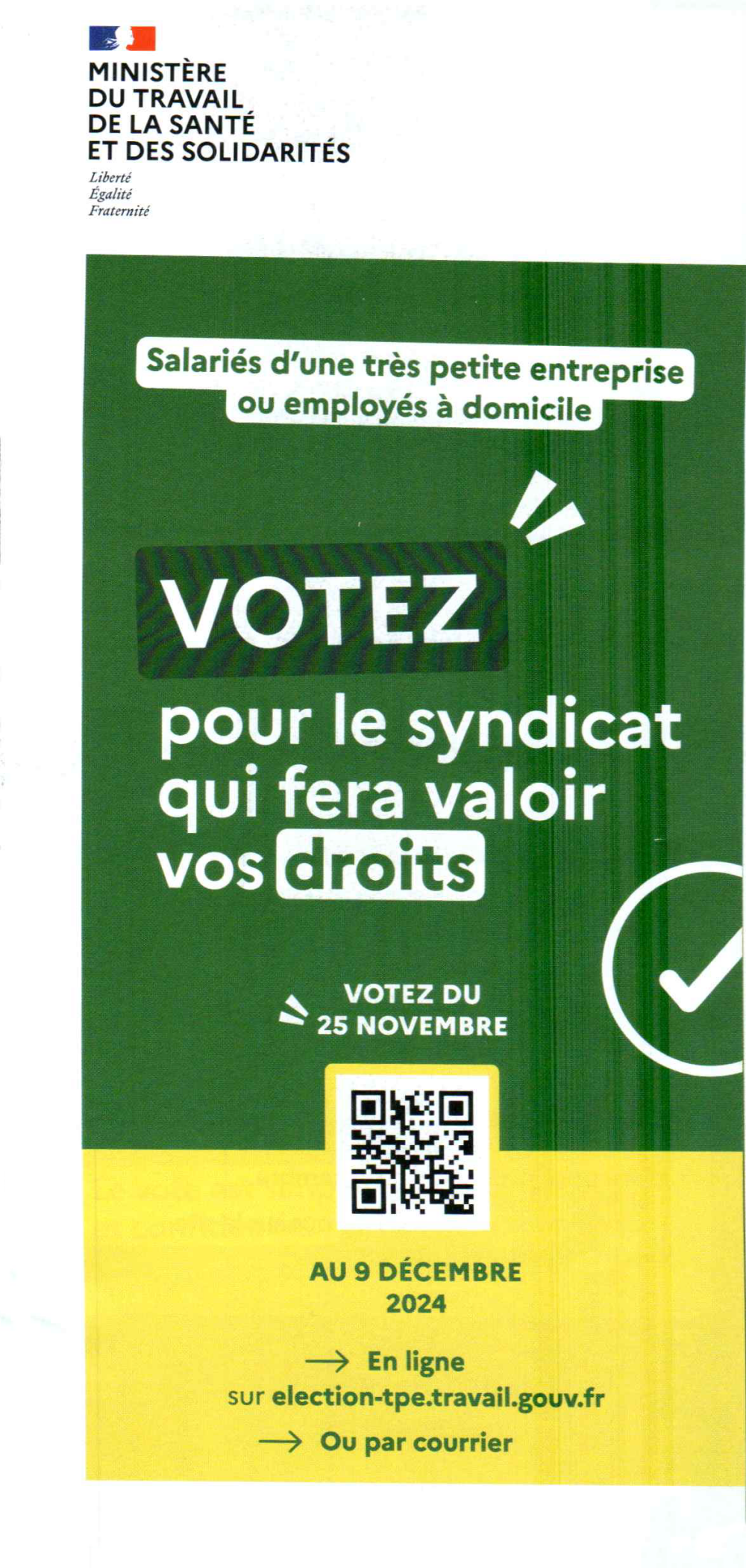 Les courriers présentant les informations d’inscriptions sur les listes électorales ont été envoyés à l’ensemble des salariés qui voteront du 25 novembre au 9 décembre pour choisir leurs représentants !