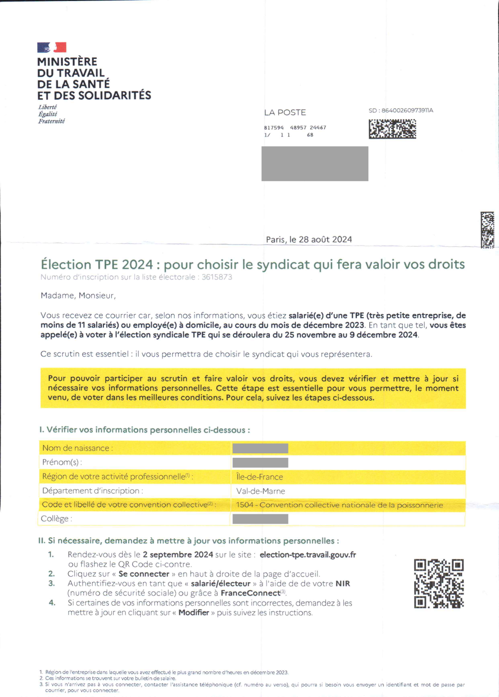 Il est possible de vérifier l’inscription directement sur internet : https://election-tpe.travail.gouv.fr/page/recherche-liste-electorale