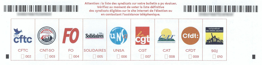 Au moment de voter, vérifiez la liste définitive des syndicats candidats et consultez leurs programmes (reçus par courrier).