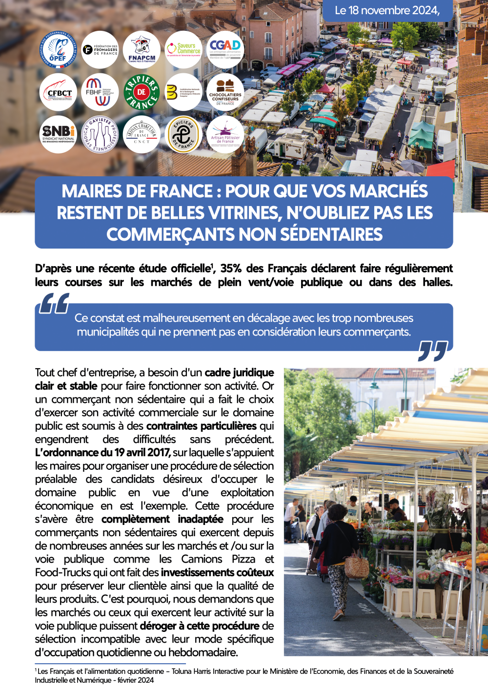 « Maires de France : pour que vos marchés restent de belles vitrines, n’oubliez pas les commerçants non sédentaires ».
