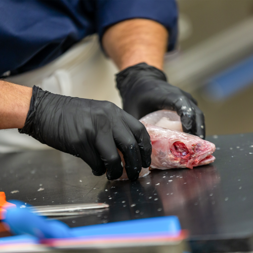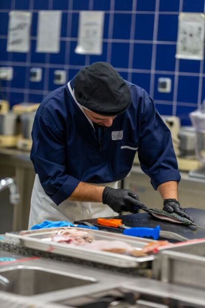 Certains d’entre vous utilisent des gants pour des préparations spécifiques (seiches, filetage, ouverture de coquillages, etc.). Le port de gants relève de la décision personnelle, de la protection ou du confort mais aucune règle sanitaire ne l’impose pour la manipulation de produits alimentaires.